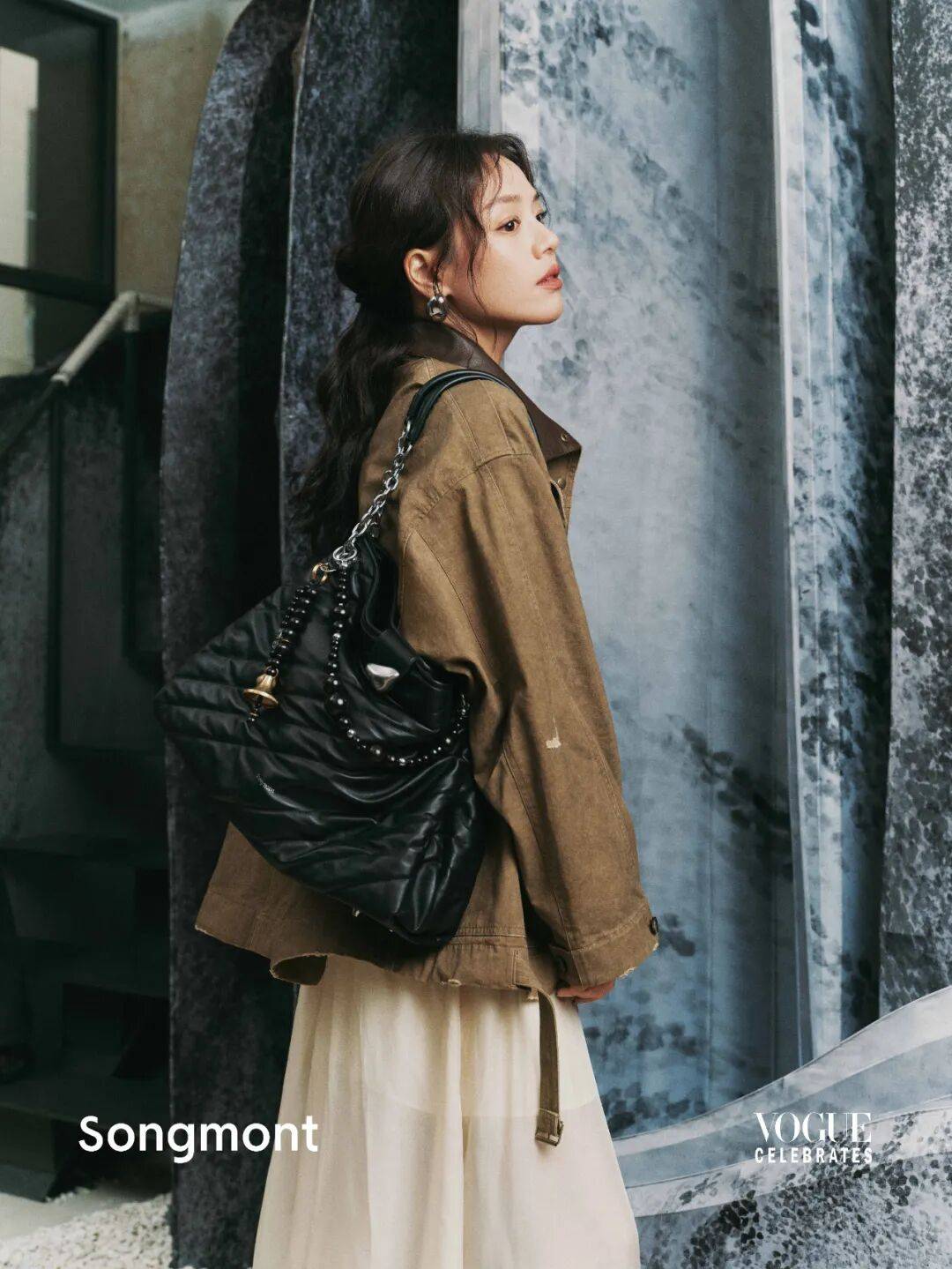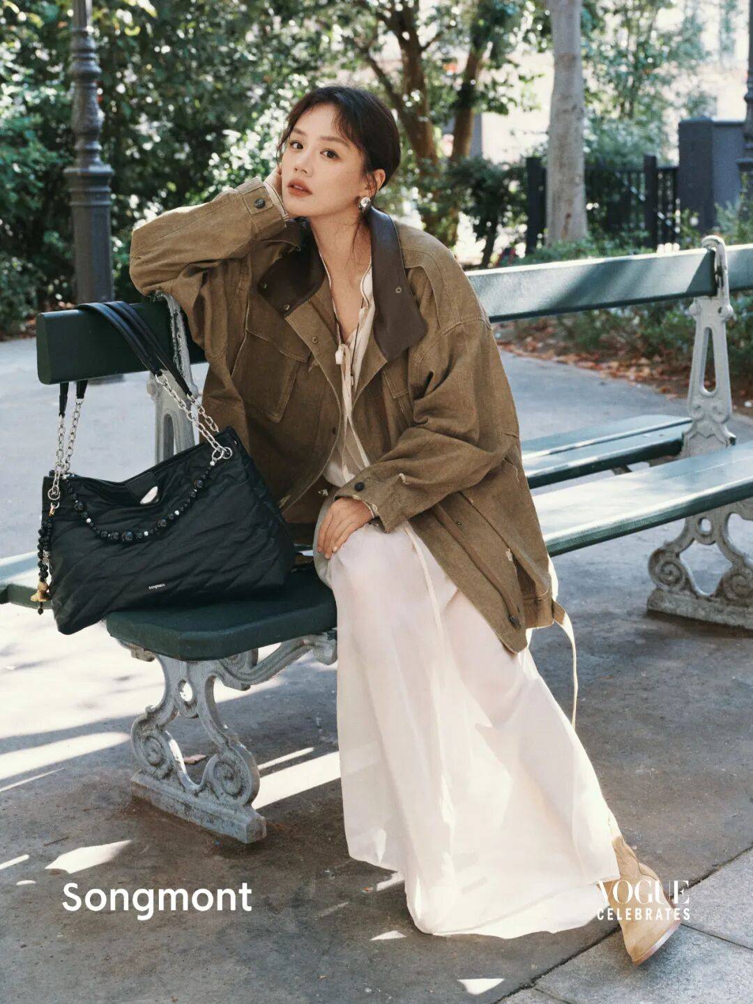 马思纯携一只“滩时托特包”亮相,夹克配白裙尽显随性,散发出一种松弛、文艺而又充满自信的都市气质。