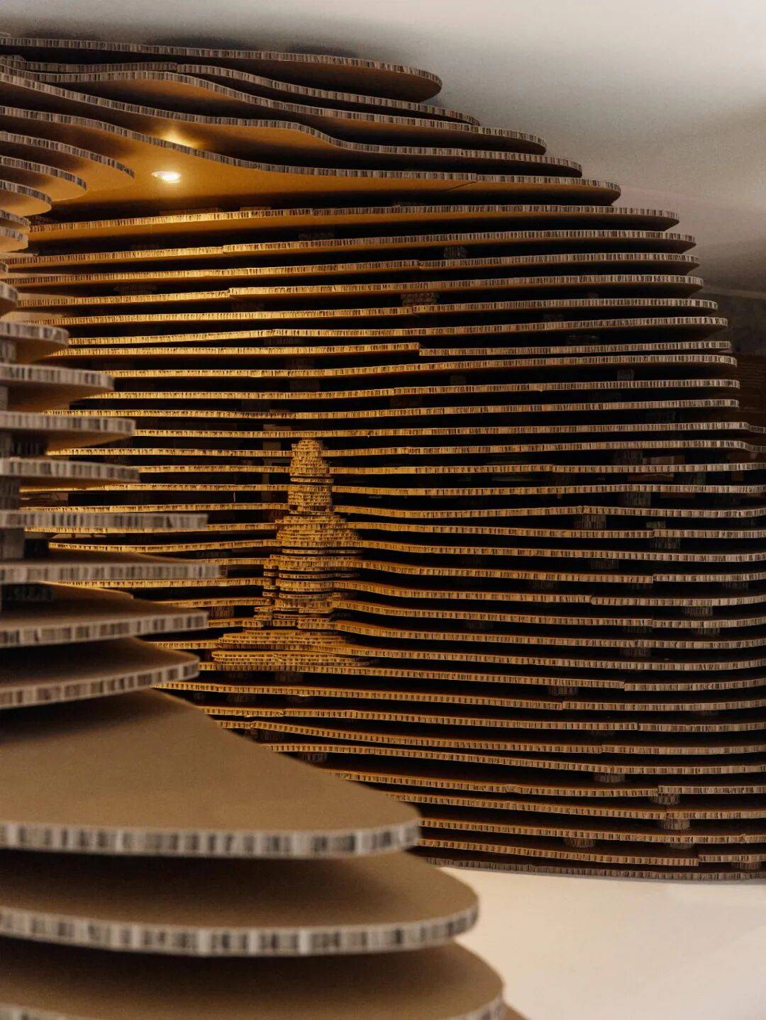 连续两年的展览中,山下有松都通过可拆卸回收的纸板山体装置与闭环利用的展览材料,将中国“天人合一”的哲学转化为可感知的环保行动。