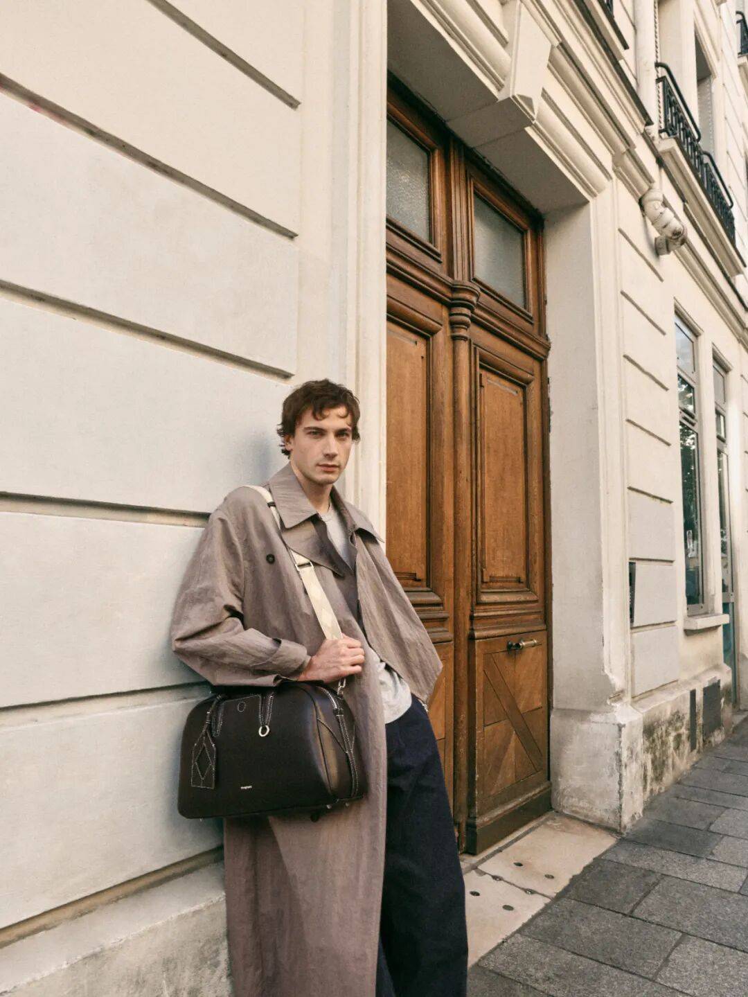 背山下有松的男人们,气质也都不一般。创作歌手米卡,肩挎沙驼棕色 “循迹Mini相机包”,带着不羁的行者气质;演员何与身穿复古西装,挎着“山行公文包”,骑自行车探索巴黎,少年感中又多了一丝沉稳。