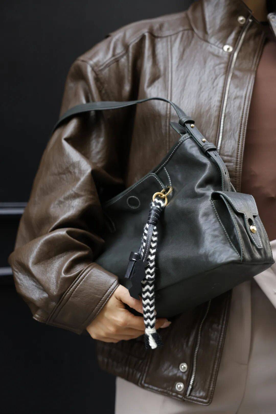 Vogue中国主编Rocco,这次在巴黎就背了蒋奇明同款的循迹旅行hobo大包,以沙砾色的反绒皮打造,有着惊人的收纳力,能装下旅行中的所有必需品。Rocco还非常喜欢给山下有松包包装饰上各种包挂,这次就挂了一个胡萝卜和Labubu,和他本人一样总是脑洞大开~