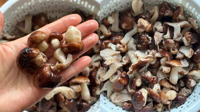 2、这个是新鲜的野生蘑菇,摘洗干净之后焯水;没有这个蘑菇其他蘑菇也可以代替;