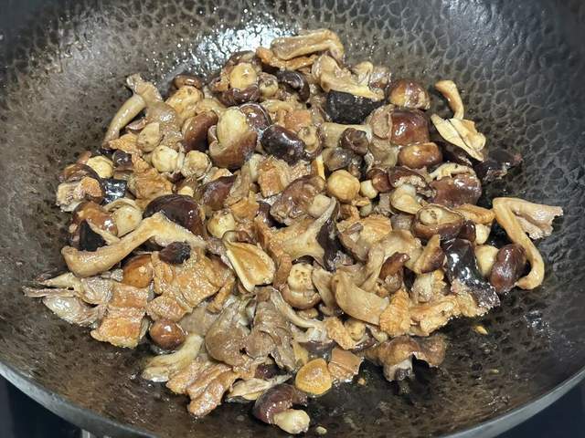 要说这道菜的灵魂,还得是那块肥瘦相间的五花肉和当季的新鲜蘑菇。五花肉真是种奇妙的东西,单吃或许会觉得腻,但和蘑菇一起炖煮后,油脂慢慢渗出,浸润着每一片菌菇,自己反而变得爽口起来。而蘑菇呢,尤其是这个季节的野生菌,带着山野间的灵气,吸饱了汤汁后,那滋味真是绝了——不是肉,却比肉还香。