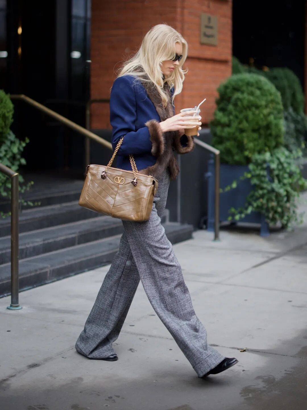 大容量包身满足职场需求(如文件、电子设备收纳),呼应《穿Prada的女王2》中Andy晋升高管后"包包承重能力升级"的设定。