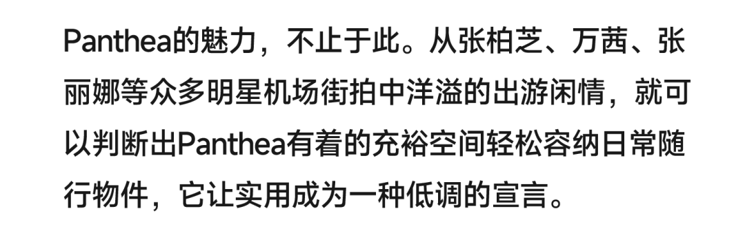 联合《Vogue》等媒体打造"Panthea能量论"话题,将手袋与"抗波动性""自成长性"等价值观绑定。