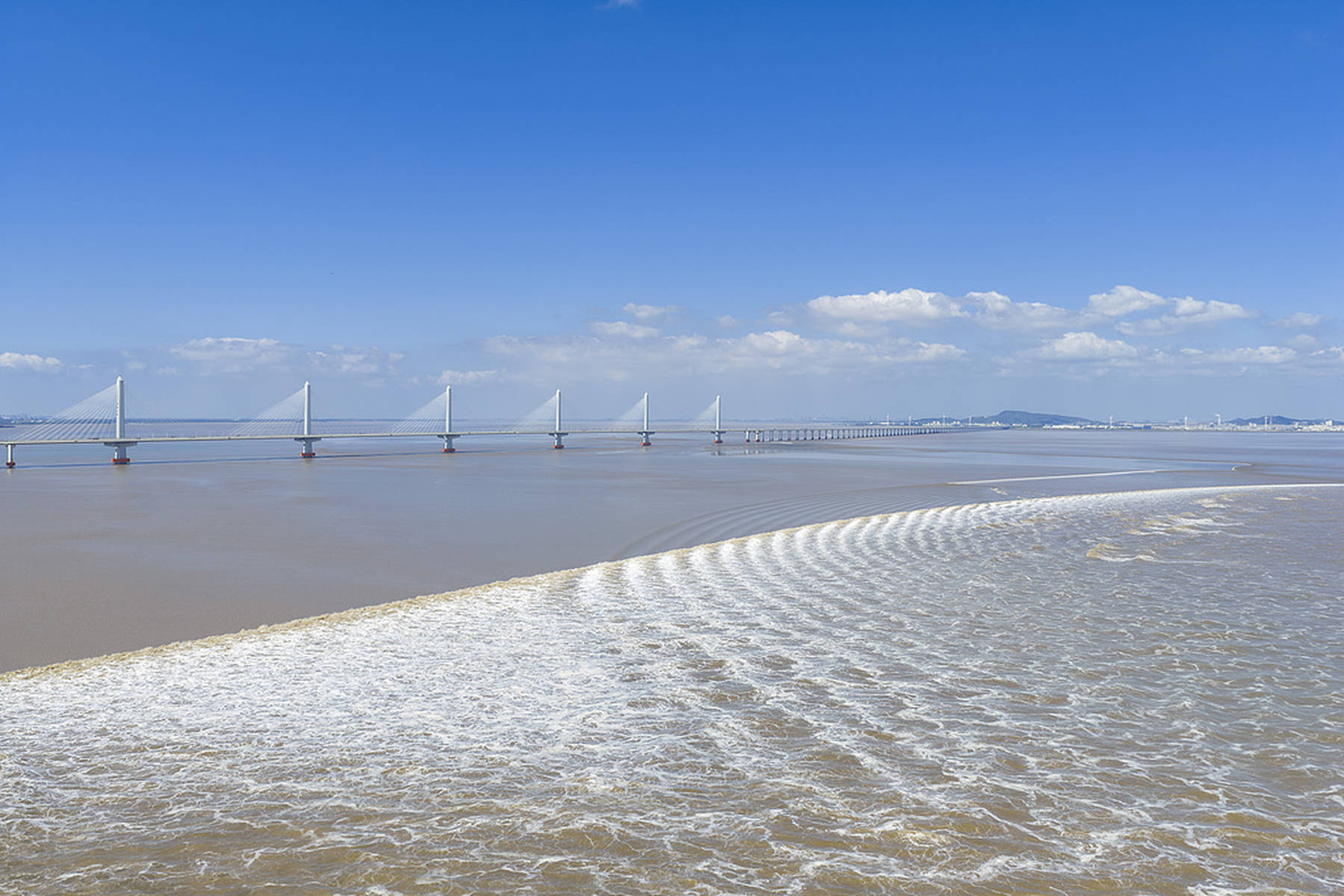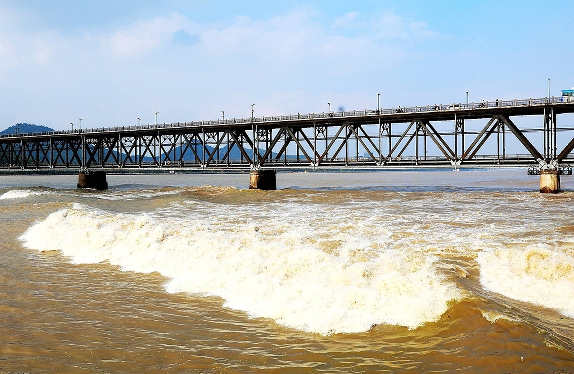 10月8日,钱塘大潮汹涌咆哮,钱塘江大桥岿然屹立。