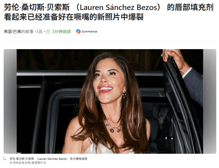 两人还在谈恋爱的时候,主打一个携手变年轻。桑切斯就是靠Do脸回春,虽说痕迹明显,被外网评价“蜥蜴化”,但是架不住首富喜欢。