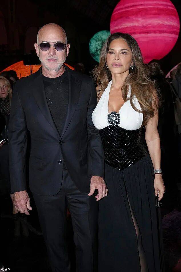 贝佐斯与桑切斯均以盛装亮相!贝佐斯身着蓝色起源的外套现身,蓝色起源乃是他一手创立的、专注于航空航天制造领域的公司。他选择这件外套,与派对主题堪称完美契合。