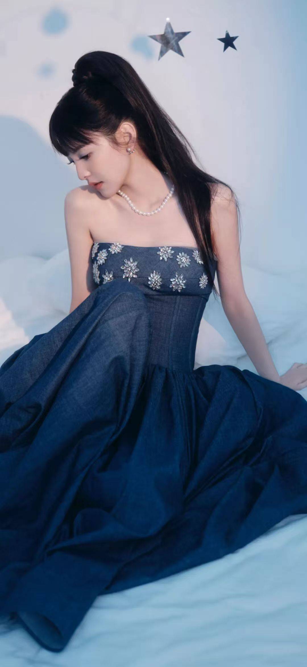 看到章若楠这组蓝色系照片,我第一反应是:这回的造型团队真没偷懒。蓝色抹胸配珍珠项链,蓝色眼影轻轻一抹。简单,但就是让人挪不开眼。很多人夸明星只会说“美炸了”,其实背后全是细节。