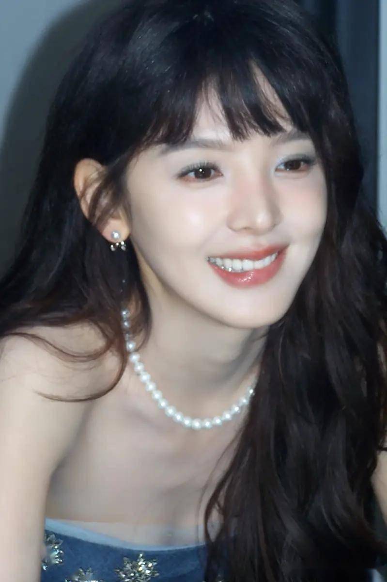 比如这种蓝,不是随便挑的。饱和度稍微高一点就显黑,暗一点就老气。它恰好卡在清爽和贵气中间,衬得她皮肤透亮。珍珠项链也选得妙。要是换成钻石,瞬间变隆重,反倒压住了她那种俏皮劲。