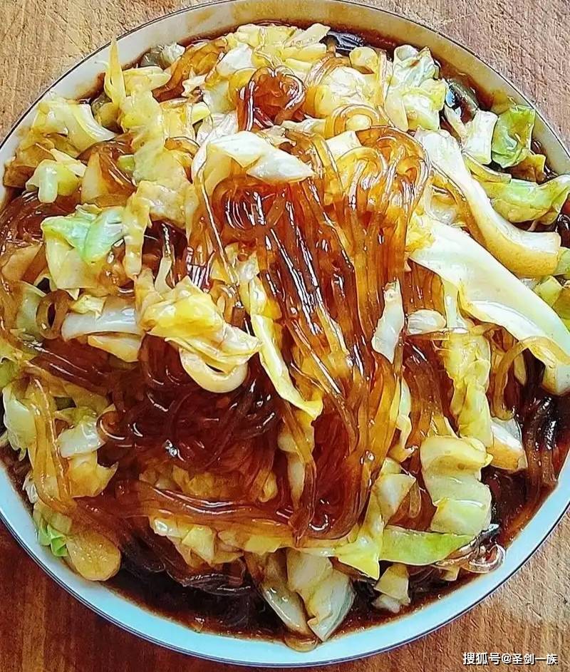 食材:卷心菜丝、粉条(泡软)、五花肉片、葱姜蒜、红椒丁、老抽、料酒。
