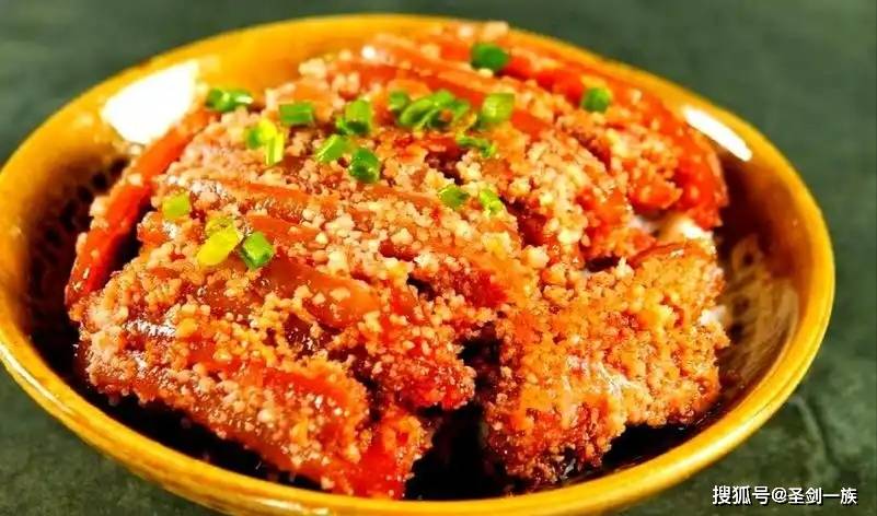 8. 最后把剩余芡汁均匀淋在菜面,油亮酱汁沿叶片流下,象征“金钱满地”。粉蒸肉