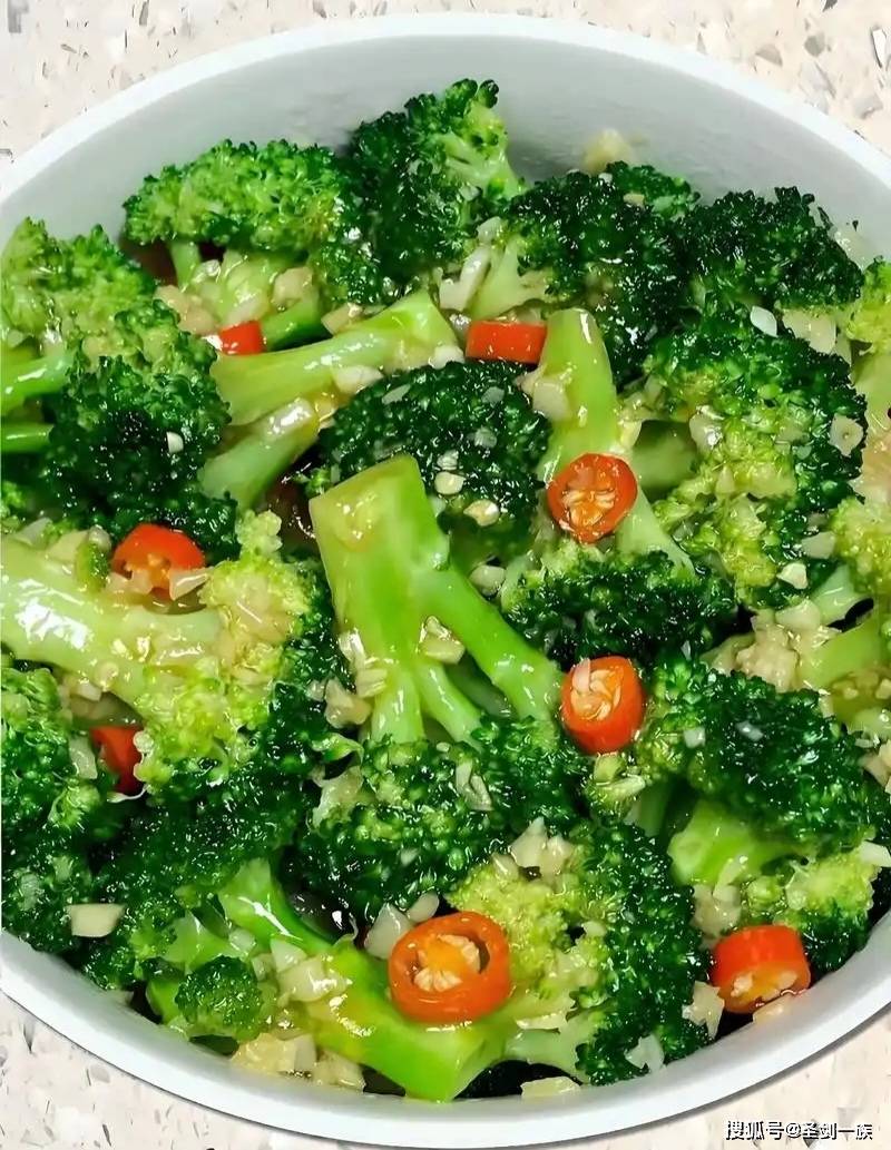 2. 热油爆香蒜末,放入西兰花翻炒,加盐和生抽调味即可。