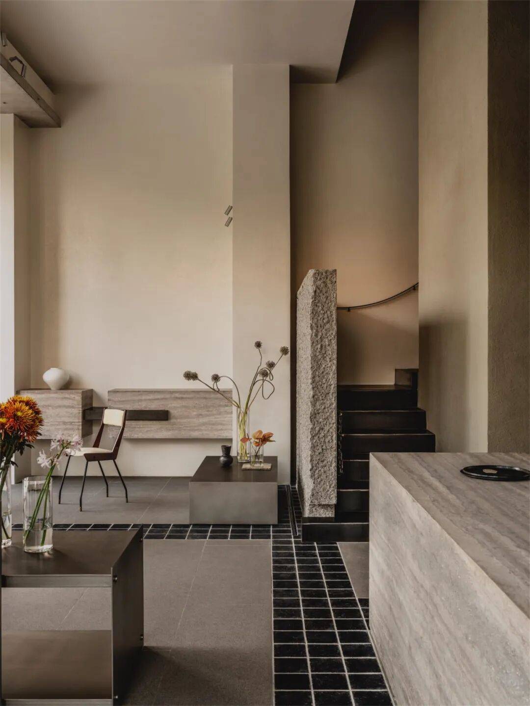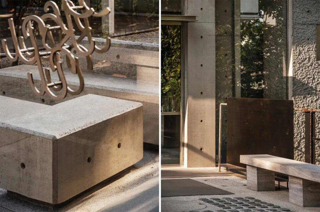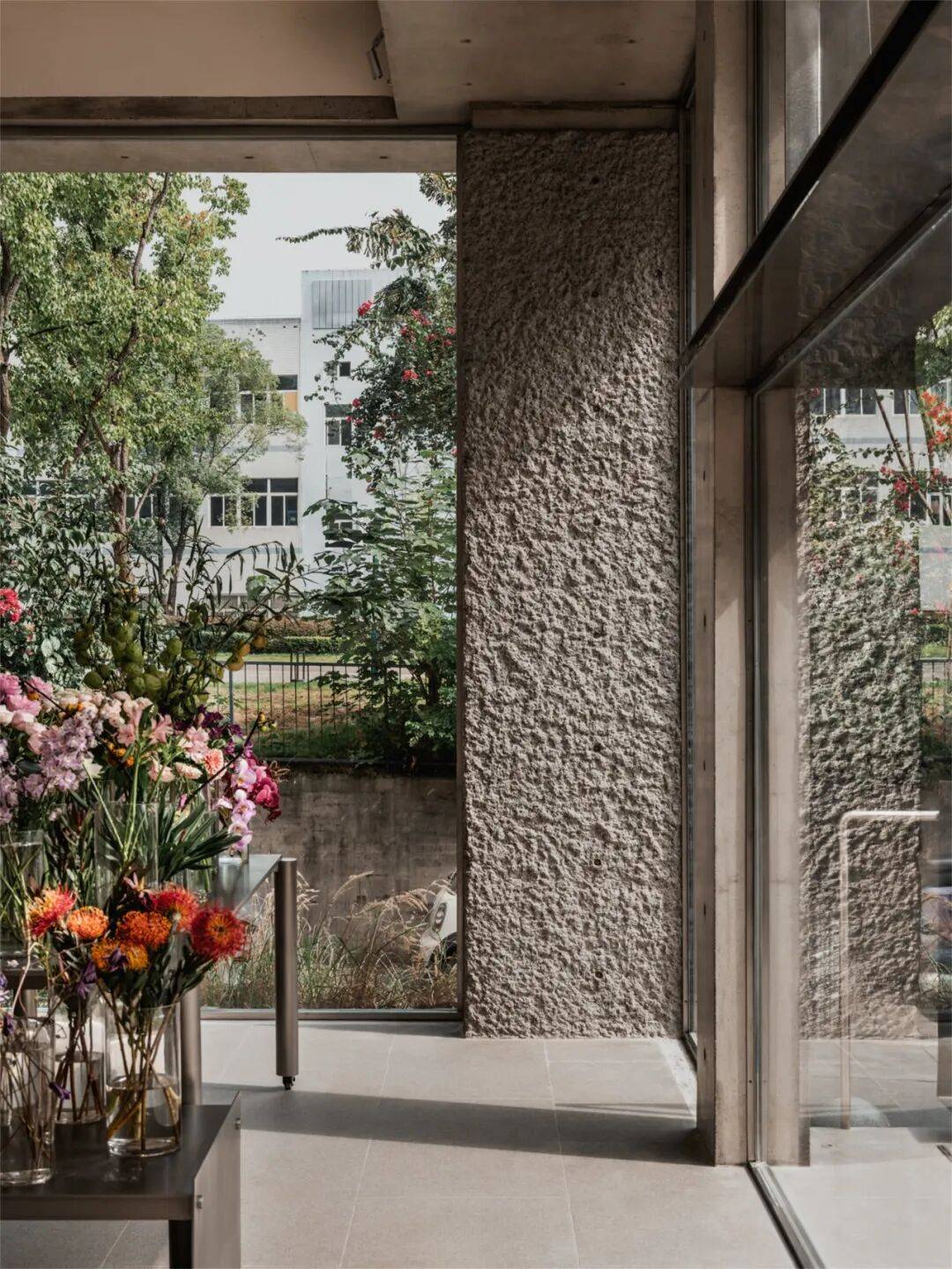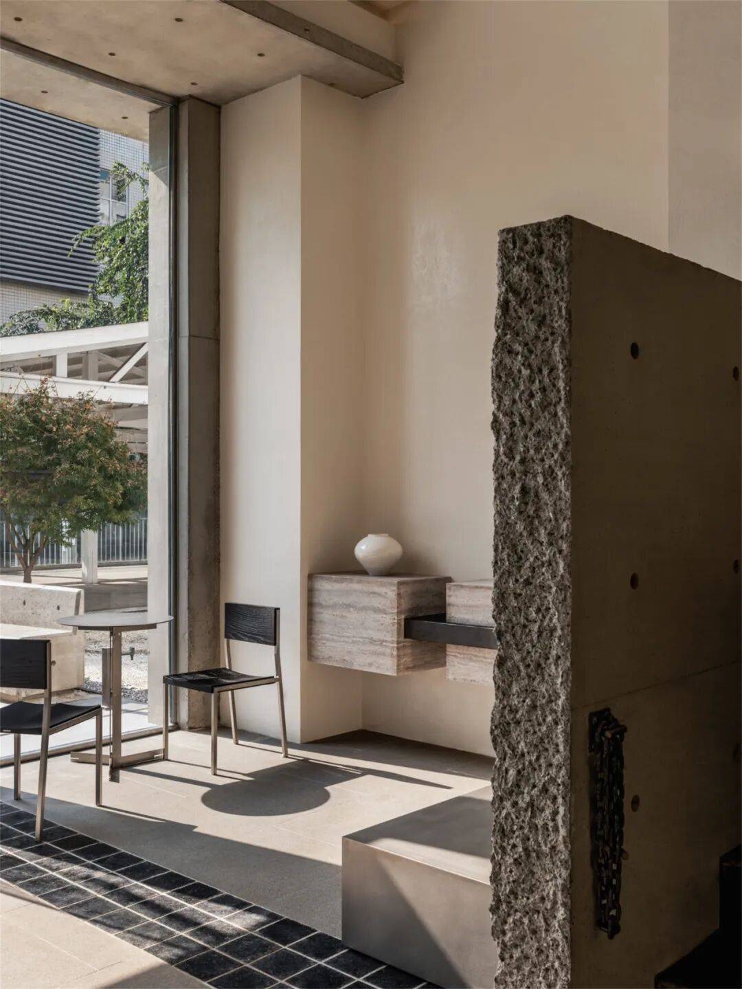 混凝土是Kuu花店的主要材质之一。设计师充分利用混凝土浇筑后的自然状态——裂纹、气孔等“瑕疵”,将其视为时间沉淀下的语言。