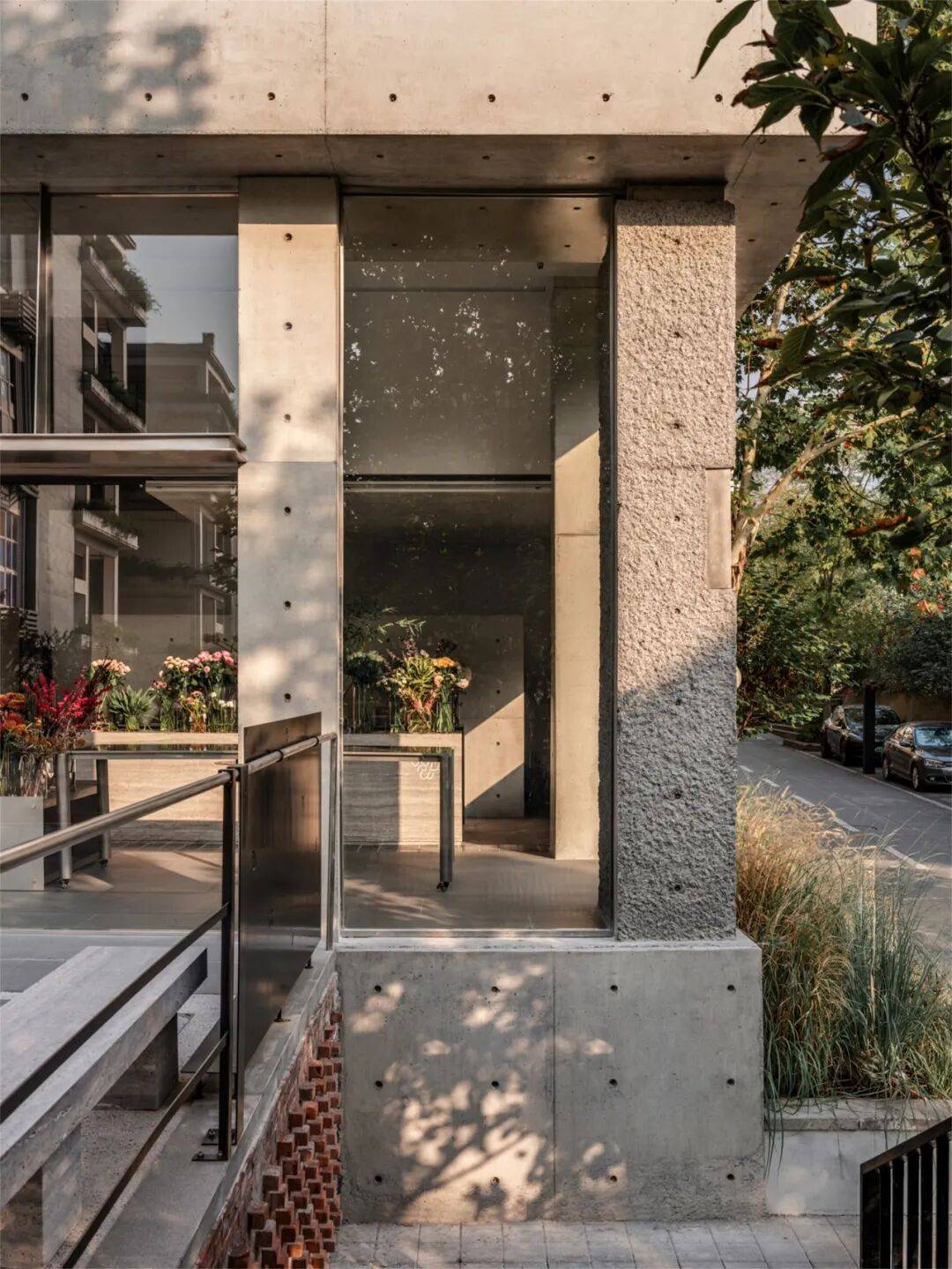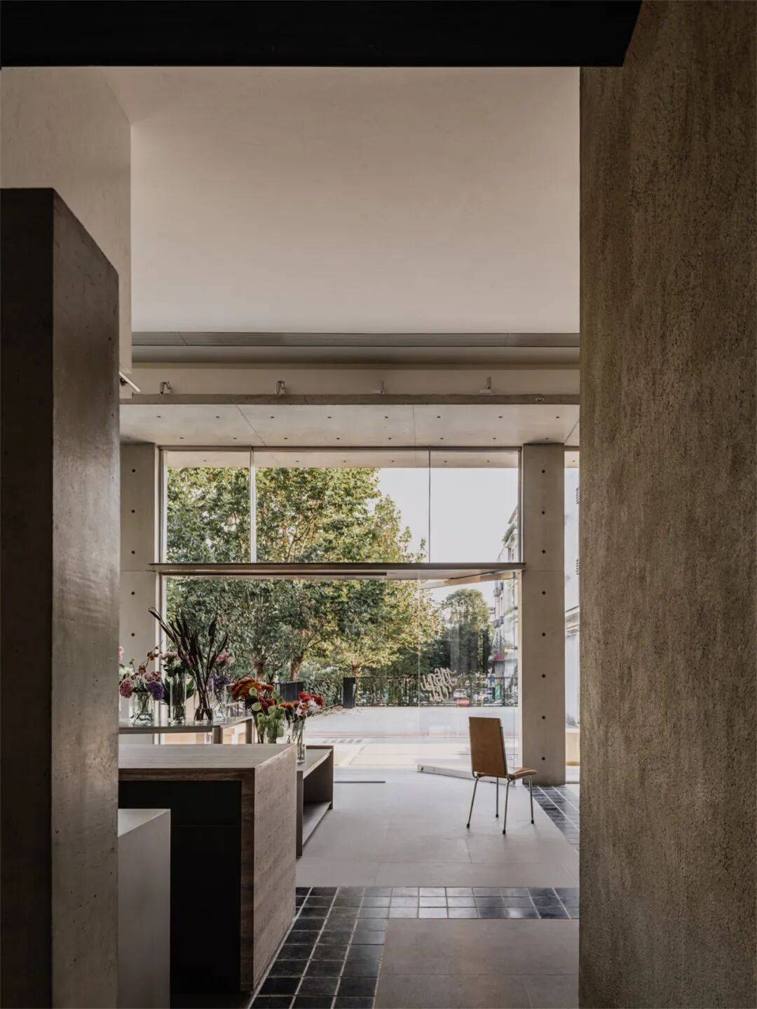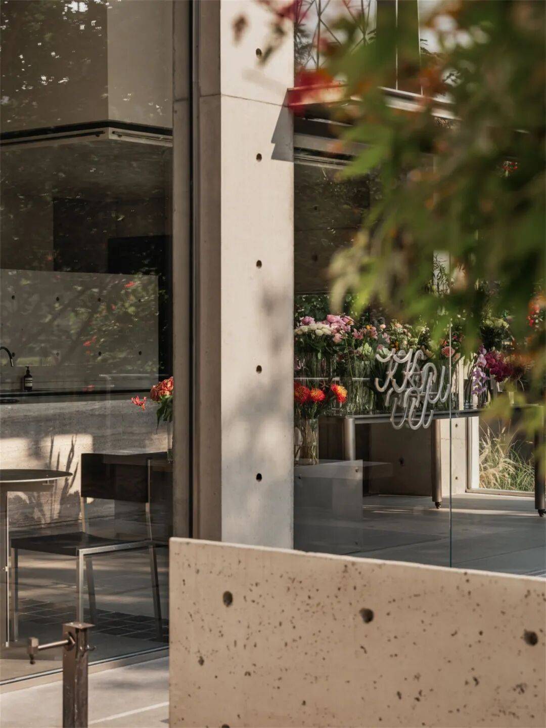 光是Kuu花店设计中不可或缺的灵魂元素。通透的玻璃幕墙将自然光引入室内,在混凝土墙上投下变幻的光影。
