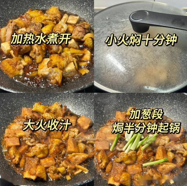 6. 加入适量清水或高汤(没过鸡块),大火烧开后转小火焖煮15-20分钟。