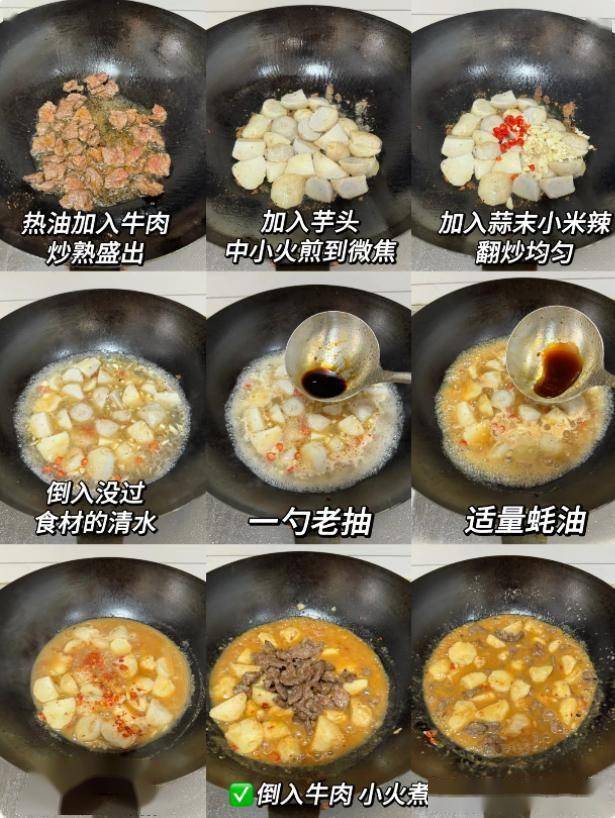 特点:牛肉的醇厚与芋头的绵软完美结合,汤汁浓郁下饭。牛肉提供优质蛋白质和铁质,芋头则提供丰富的碳水化合物和膳食纤维,营养均衡。