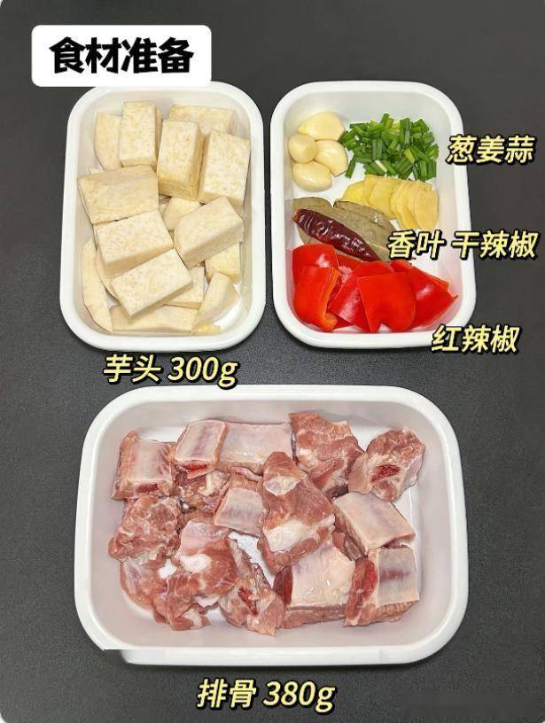 1. 排骨焯水去血沫;芋头去皮切块;葱姜蒜切末;红椒切块备用。