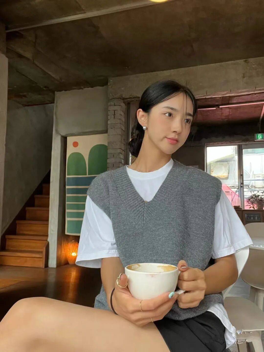 大V领的马甲,又巧妙修饰脸型视觉拉长颈部线条,显脸小~