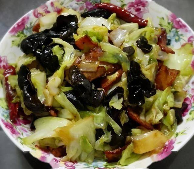 5、放入木耳、盐翻炒十几秒钟关火装盘