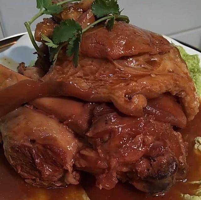 - 红烧猪蹄 & 酱肘子:浓油赤酱,色泽醇厚,是典型的“北味”代表。这类菜肴讲究慢炖细煨,寓意人生的沉淀与积累。正如《道德经》所说:“大音希声,大象无形”,真正的美味往往藏于时间的熬煮之中。