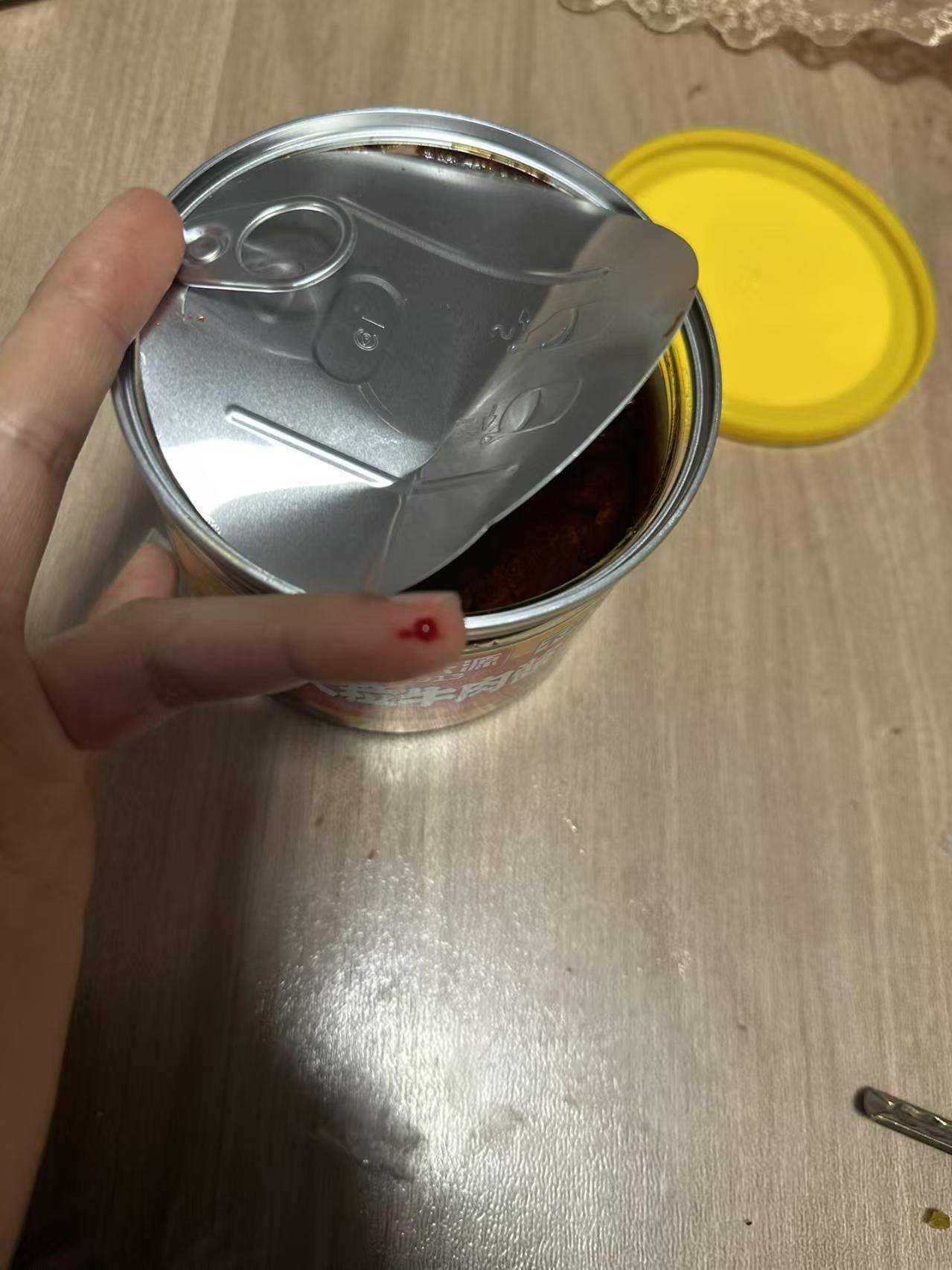 网友@大喜大悲:上次被罐头盖划出血,血流到罐头里,疼也疼了罐头也扔了。