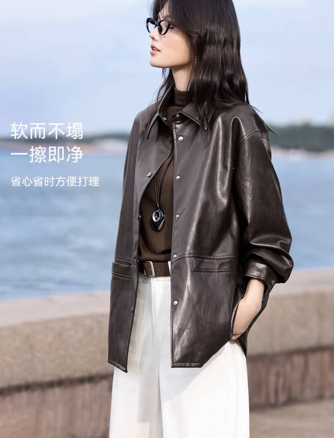 另外,挺阔的质地也是皮质外套时尚的关键,不仅能增强保暖性,更能彰显十足的质感。