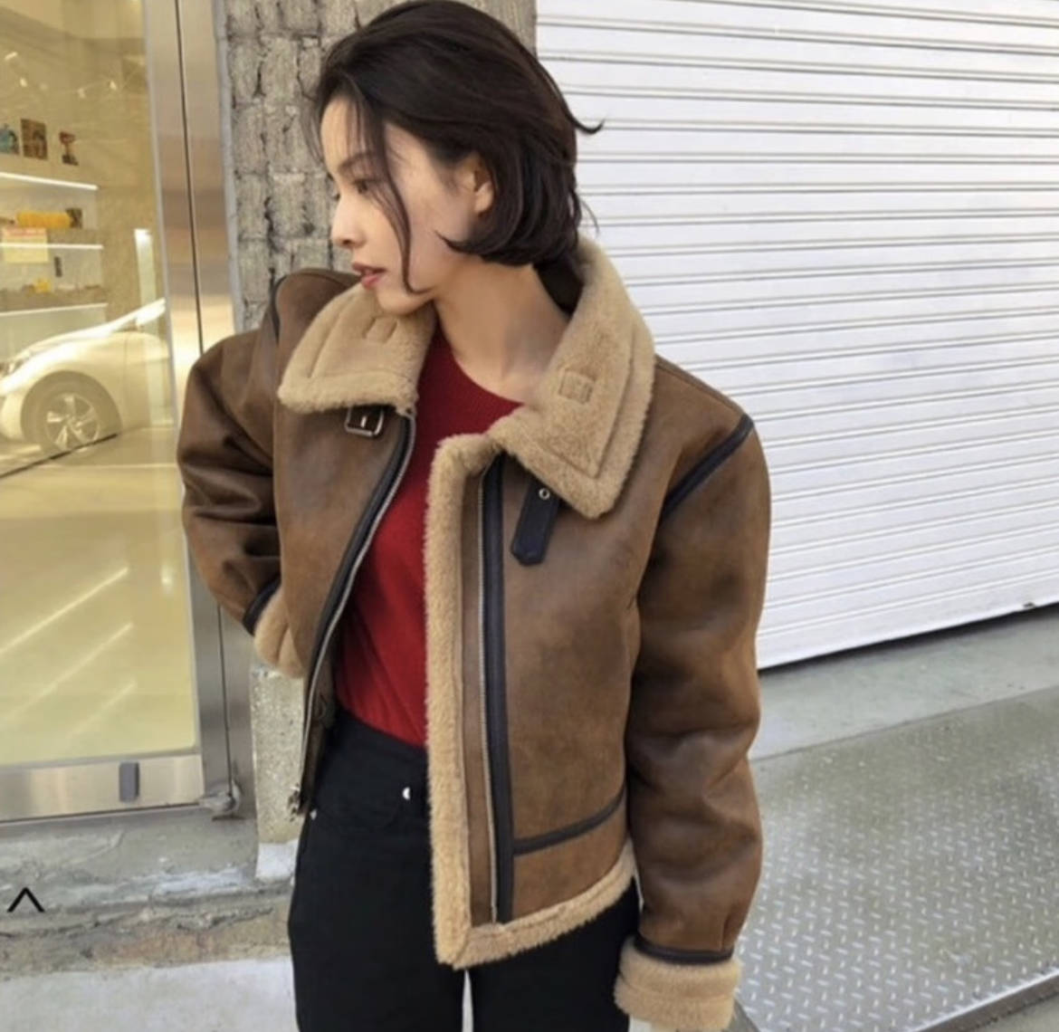 比如这种皮毛一体的机车夹克款就是非常质朴、厚实,极具大地色系的高级质感。