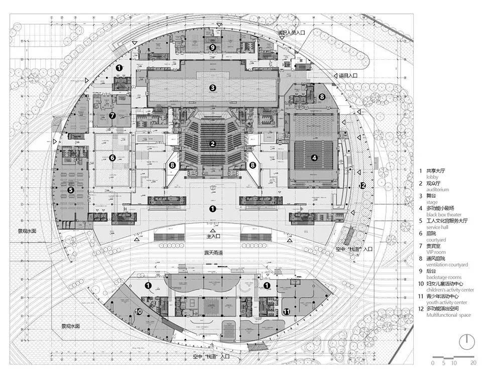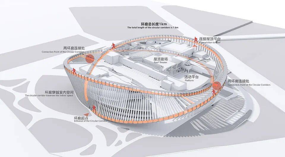 - 共享空间:共享大厅、露天甬道、空中栈道等公共空间的设计,确保建筑在无演出时仍能作为市民日常活动的“公共客厅”。