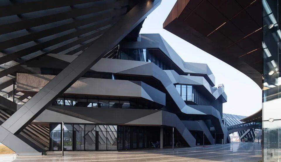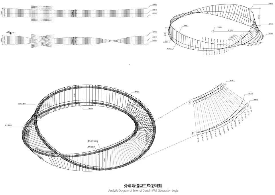 莫比乌斯环作为建筑外皮,不仅是视觉符号,更是功能分区的“结构骨架”。其双面形态实现了功能的差异化布局: