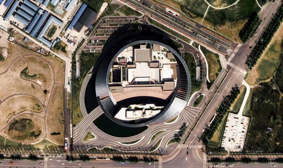 天汉大剧院的设计始于2013年全国方案征集,核心理念在于“古今对话”与“天圆地方”。建筑形态采用直径180米的近圆形设计,象征“天圆”,并通过莫比乌斯环造型体现循环不息的汉文化意象;内部功能布局则遵循“地方”,以正交网格系统梳理多元功能。这一“外圆内方”的格局,既呼应了汉江的蜿蜒曲线,又暗合中国传统哲学思想。