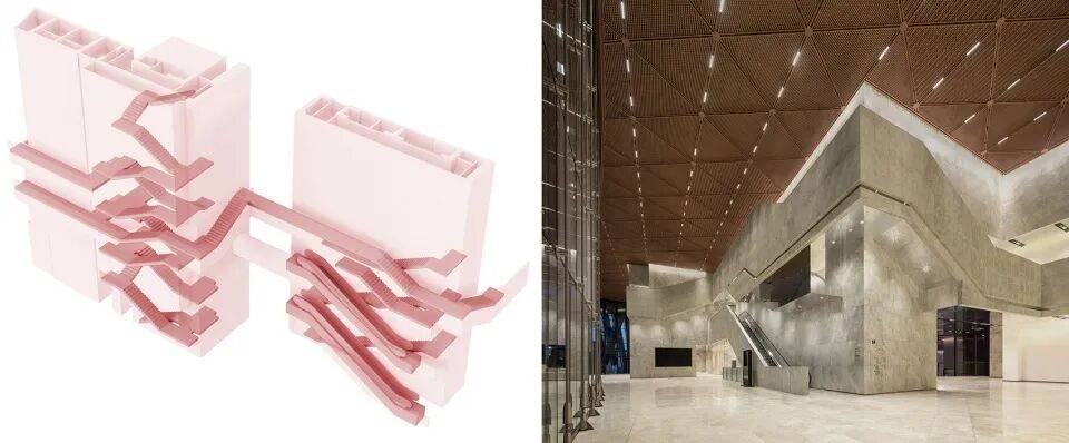 ▲大厅疏散楼梯及扶梯与“栈道”的整合©是然建筑摄影