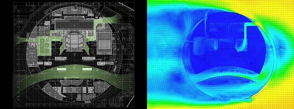 ▲连接室外的“风走廊”及CFD气流模拟©BIAD