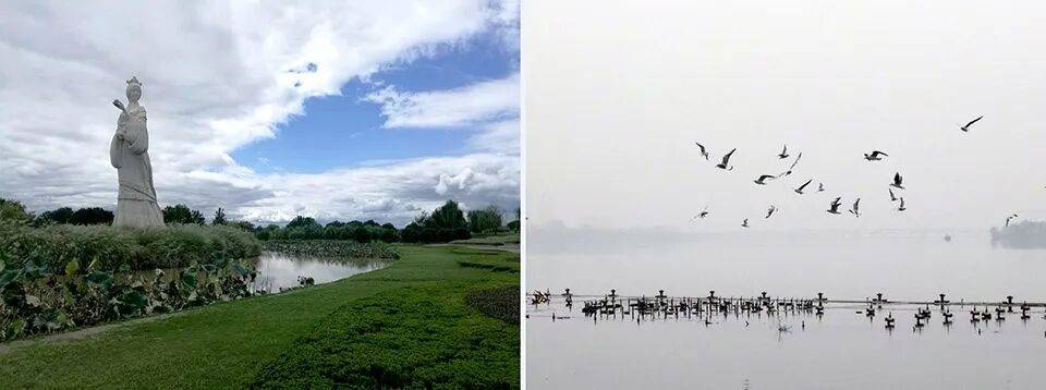 汉中,被誉为“西北江南”,地处秦岭与巴山之间,汉江与嘉陵江穿城而过,形成了独特的自然与人文交融的风貌。其温润气候与丰饶物产,孕育了从容闲适的“慢生活”氛围。天汉大剧院选址于汉中老城区以南5公里的滨江文化公园旁,距汉江仅300米,近揽湿地绿意,远眺秦岭轮廓。这一选址不仅是城市与汉江交接处的“点睛之笔”,更通过与已有标志性建筑“天汉楼”的遥相呼应,构建起南北城市轴线,成为衔接老城与新区的文化枢纽。