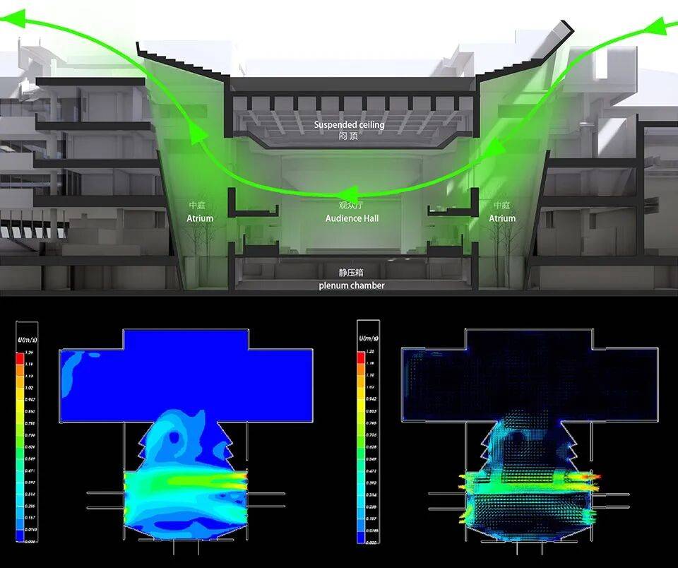 ▲观众厅自然通风分析及CFD气流模拟©BIAD