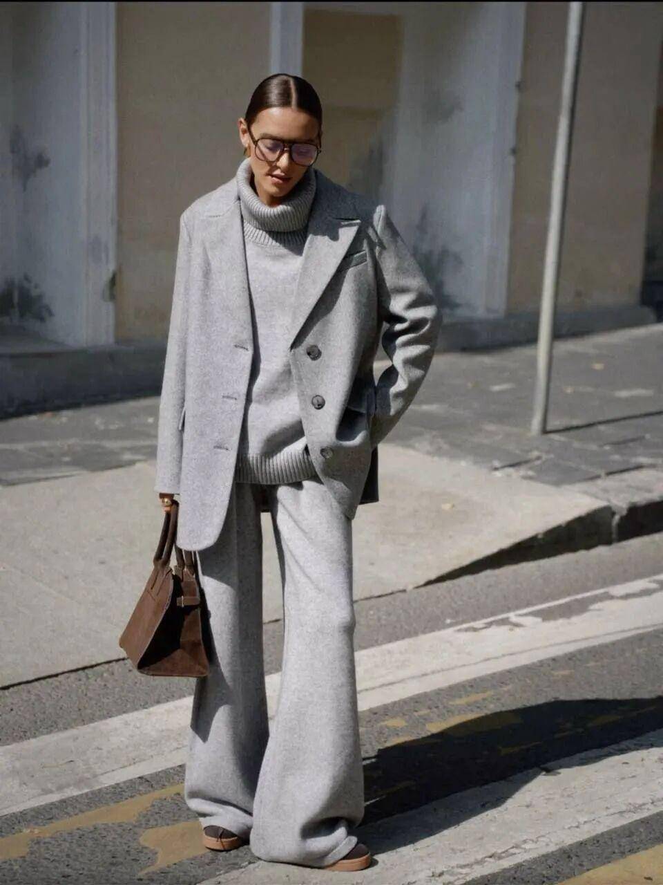 灰色的美在于 “分寸感”—— 不取悦谁,却透着穿者的笃定与冷静,靠明度与肌理的变化,在理性中藏着柔和。