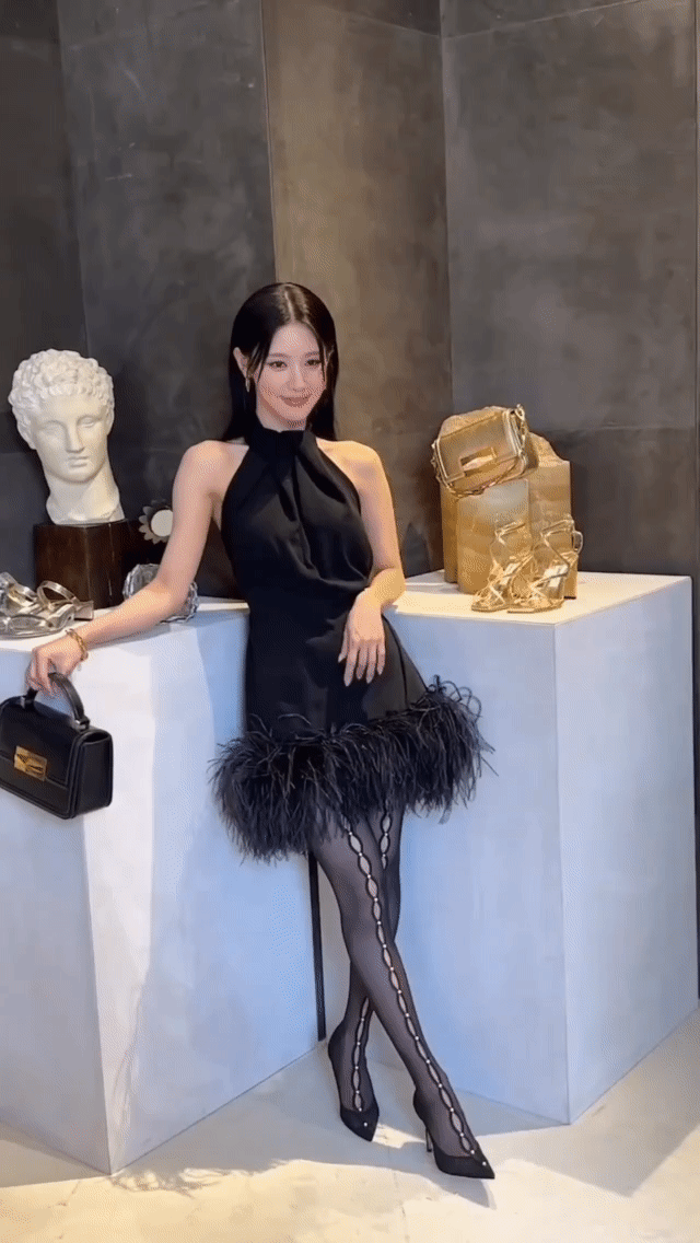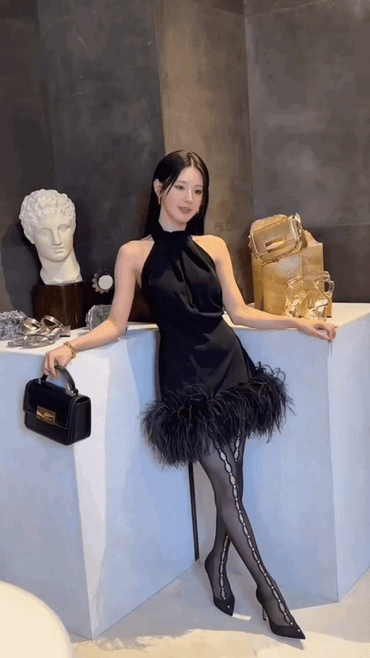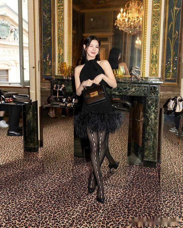 高跟鞋的选择同样考究。简约设计的黑色高跟鞋与黑丝完美融合,鞋跟高度适中(约5-7厘米),既提升了整体气场,又保证了行走的舒适度。高跟鞋的加持下,IU的站姿更显挺拔,每一步都散发着迷人的韵律感。正如文章所述:“瞬间就把优雅气质拉满”,黑丝与高跟鞋的经典碰撞,在IU身上演绎出了高级而不低俗的独特魅力。