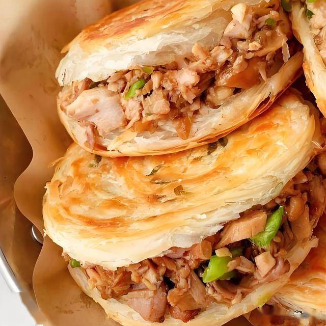 猪头肉经过精心卤制,肥瘦相间,口感细腻,肉质酥烂。将卤好的猪头肉切碎,夹入刚烙好的油旋中,肉的咸香与油旋的面香相互交融。