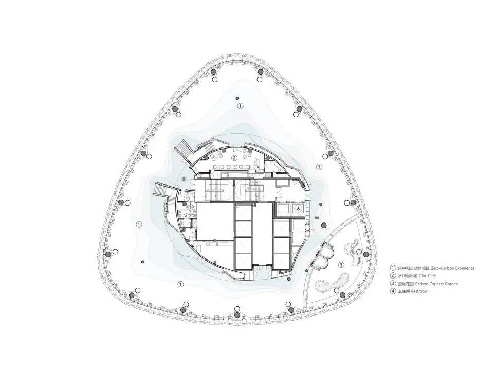 建筑师俞挺及其团队将设计任务聚焦于“打造一个目的地”,突破传统摩天楼观光厅的单一登高功能,赋予其主题性、话题性和文化属性。核心创意源于对全球气候变暖议题的关注——冰川作为气候变暖的“精确指示器”,被抽象化为观光厅的整体形态。