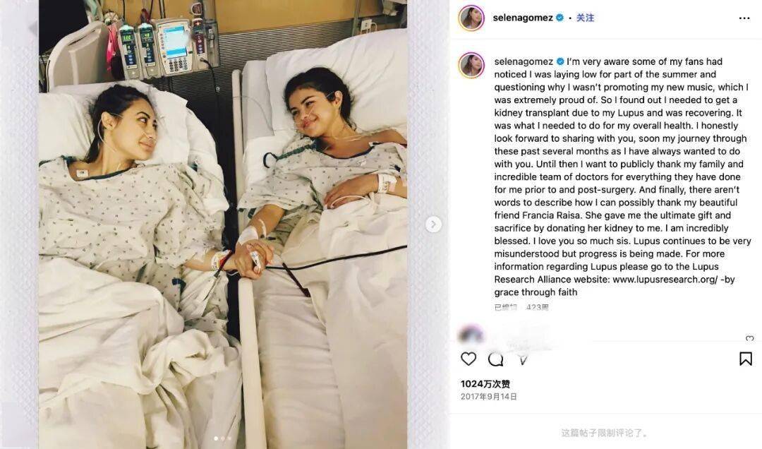 - 2017年:红斑狼疮导致肾衰竭,好友弗兰西娅·莱莎为其捐献肾脏。术后她经历漫长康复期,并最终在2019年被诊断患有躁郁症。