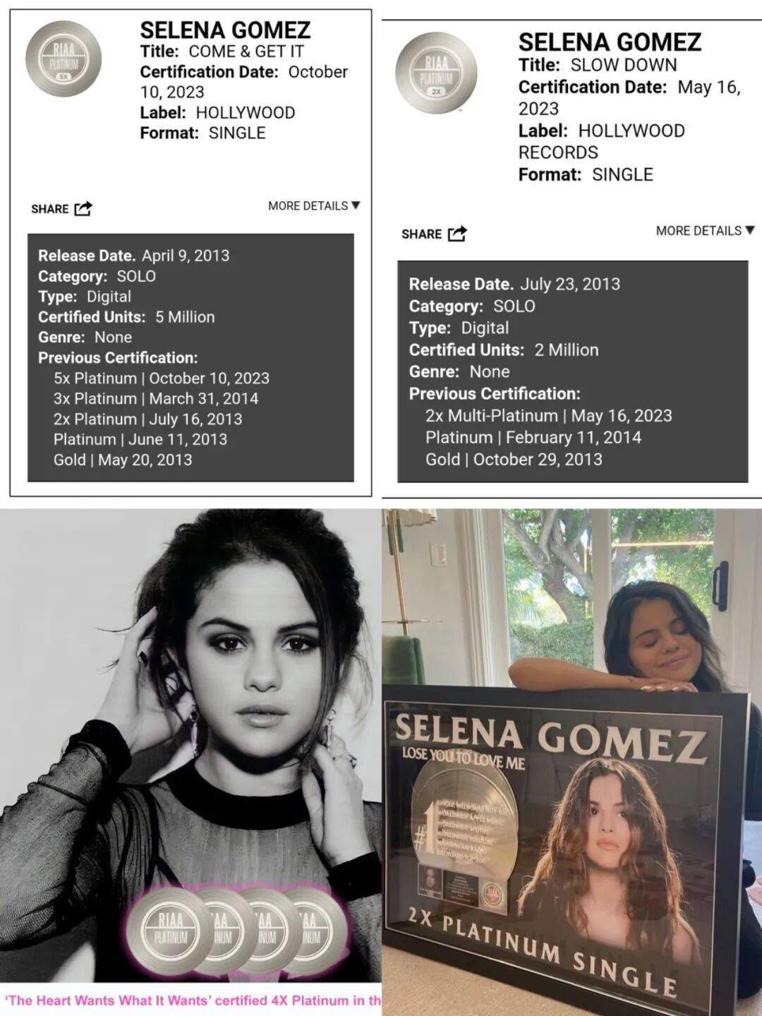 - 其他热门单曲还包括《Come & Get It》《Slow Down》《The Heart Wants What It Wants》《Wolves》《Lose You To Love Me》等。