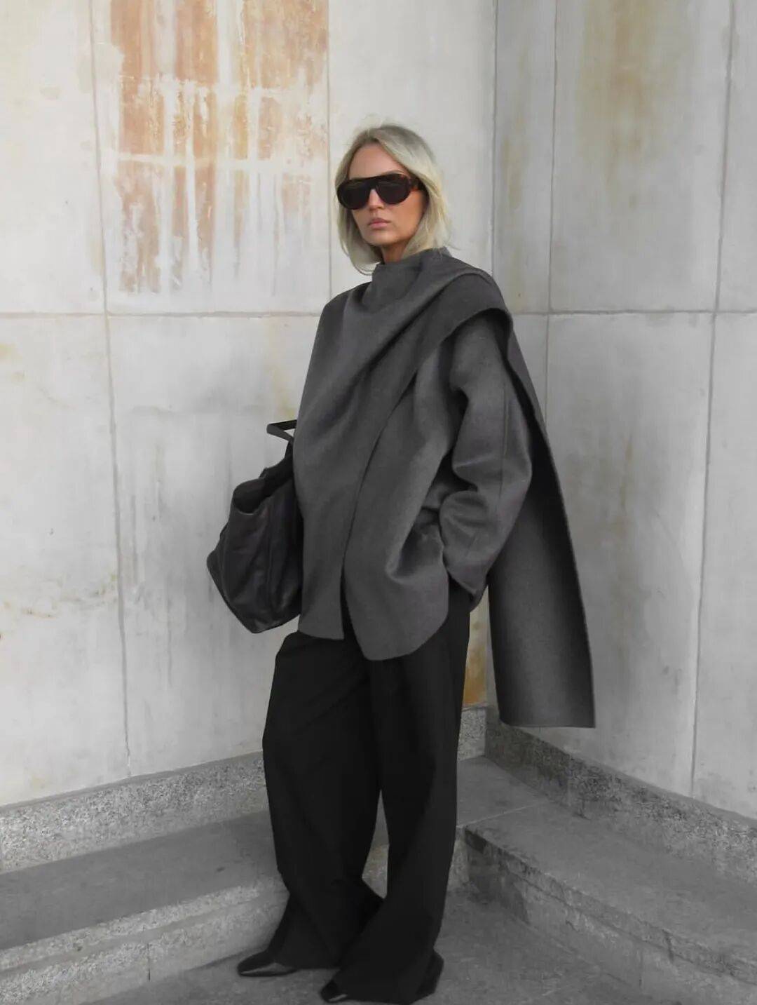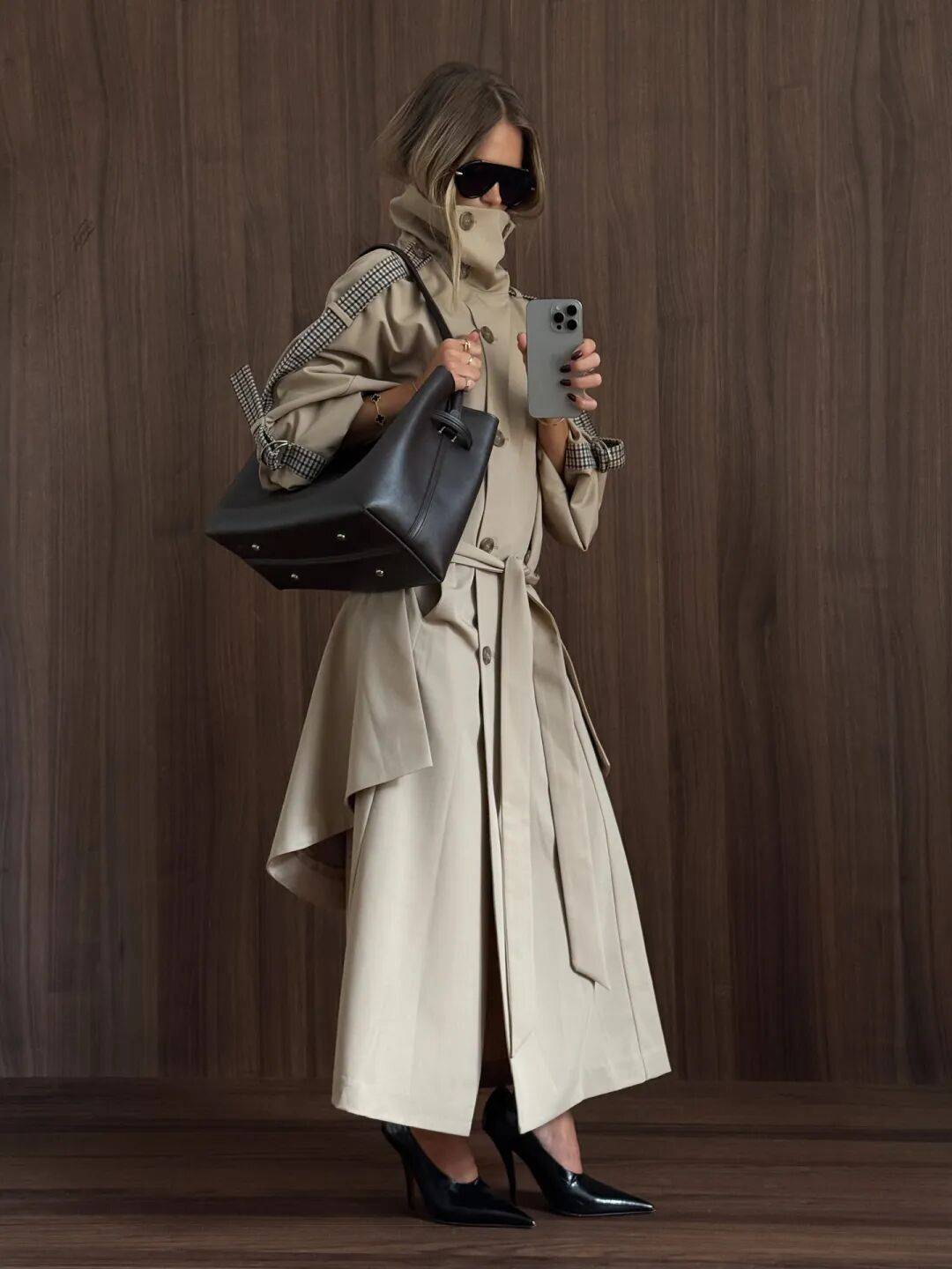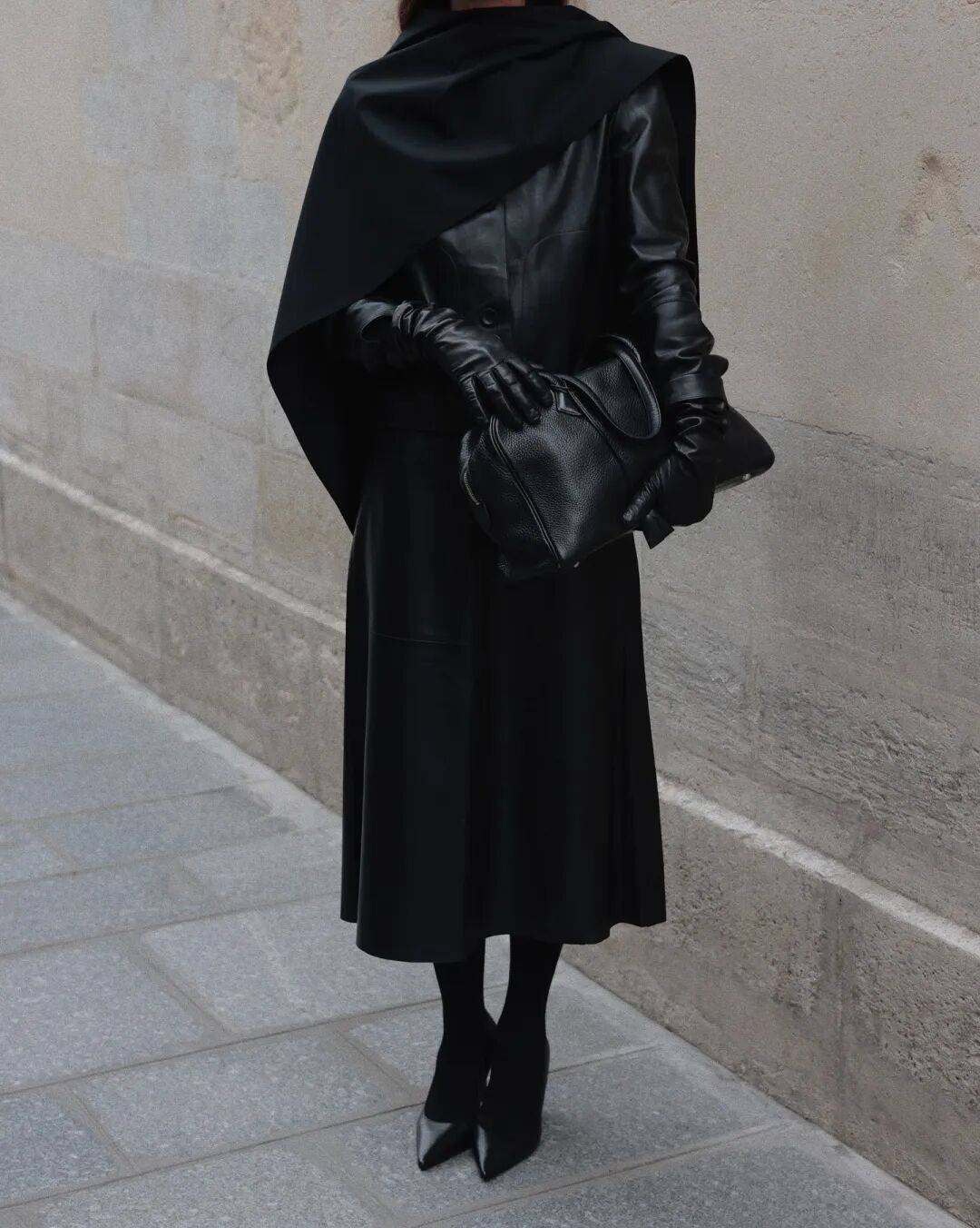 ⚠️ 控制色彩数量:全身不超过3色,善用鞋包呼应法则(例:萨洛蒙鞋带色与大衣纽扣同色)。