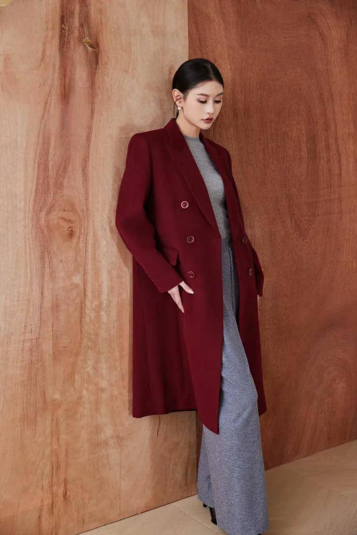 外套 廓形羊毛大衣 琥珀流光色系+隐形收腰剪裁