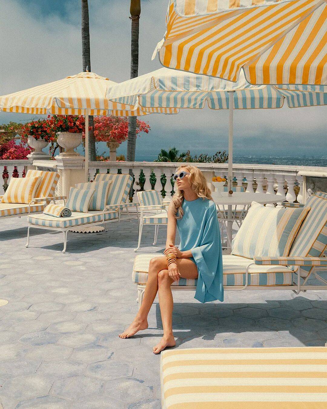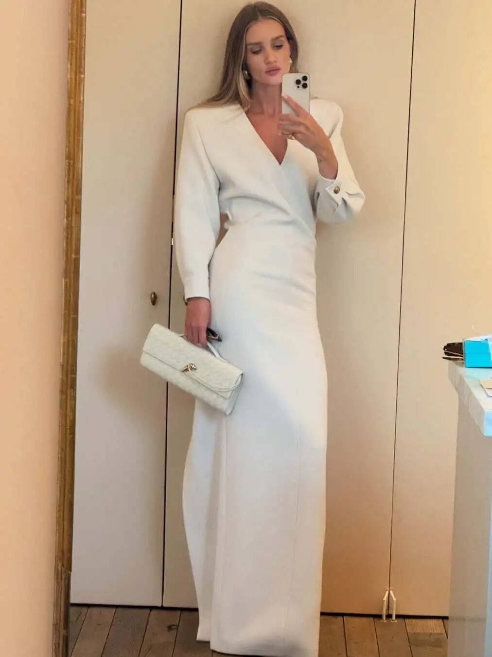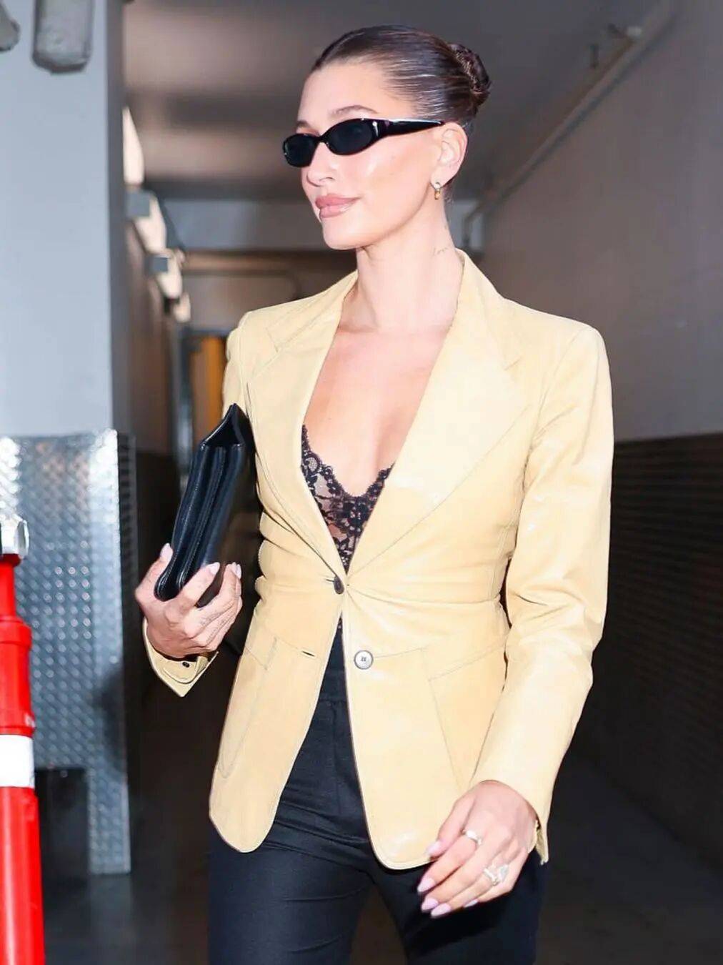 要点:内搭荡领真丝背心,袖口挽起露出手工缝线。