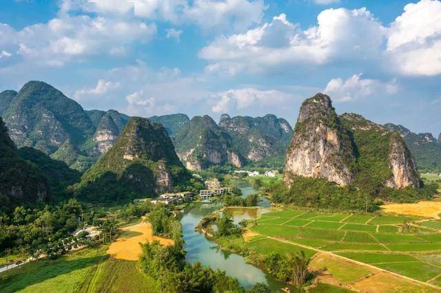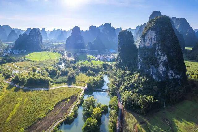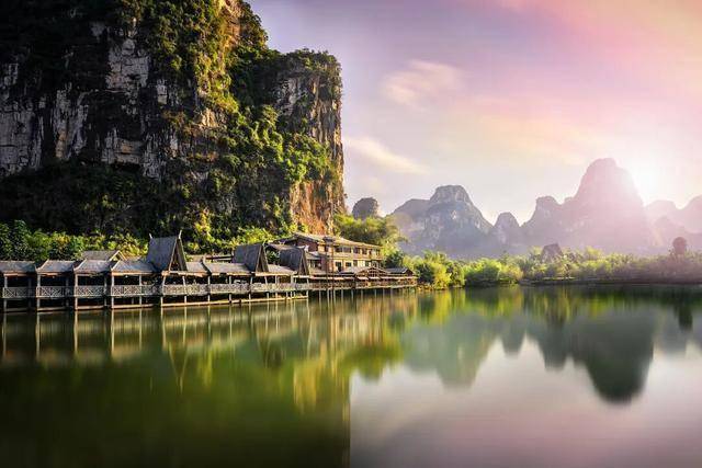 明仕田园:乘竹筏漫游黑水河,穿梭于水墨画般的喀斯特峰林与田园间,感受《花千骨》取景地的诗意。