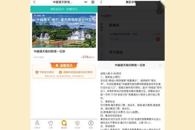 ❷中越德天瀑布跨境一日游:无需护照,带上身份证就能办理边境旅游通行证(工本费15元),实现一日游两国。