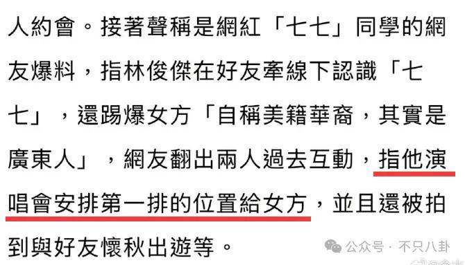 台媒也报道过此事,称爆料人透露林俊杰给七七安排了演唱会第一排的VIP座位。