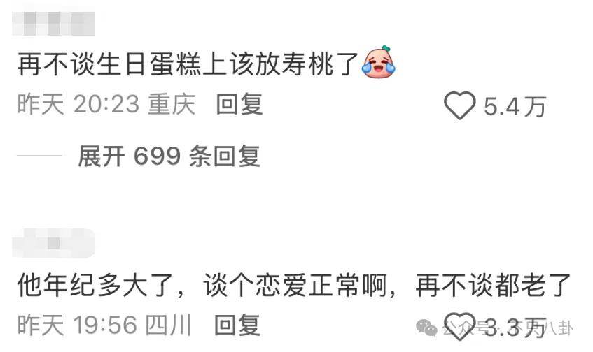 - 认为44岁单身多年谈恋合理,“年龄差不是爱情阻碍”,引用周杰伦与昆凌(差14岁)、郭富城与方媛(差22岁)等案例反驳双标。