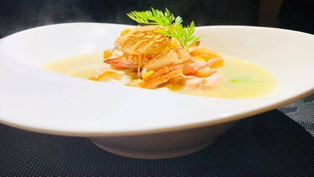 做法:将蟹宰杀后一开为二,鲜玉米、燕麦仁、红腰豆等杂粮焯水备用