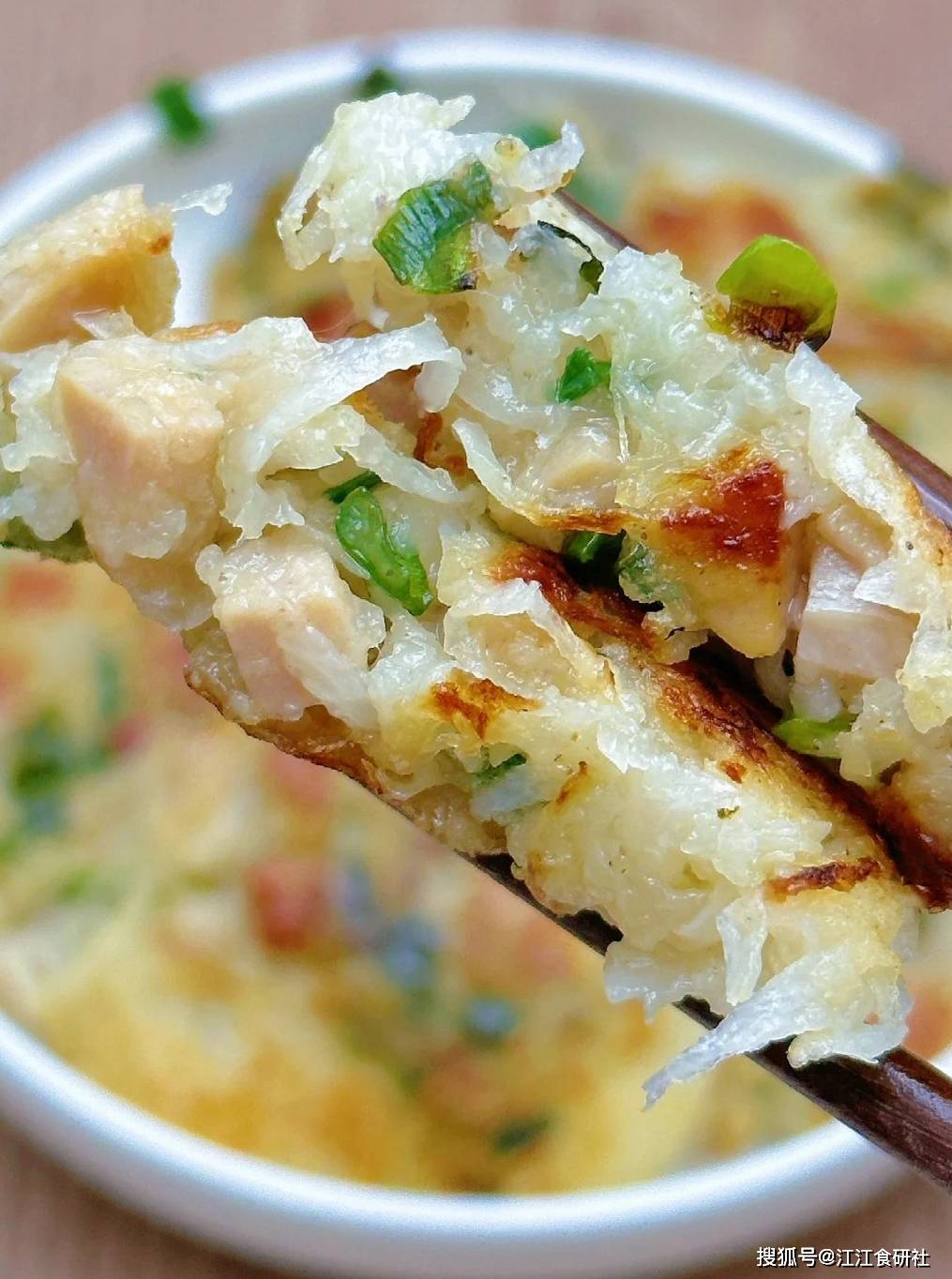 面粉只起粘合作用,饼的主体仍是萝卜丝,这样煎出来外酥里嫩,萝卜的清甜更突出。