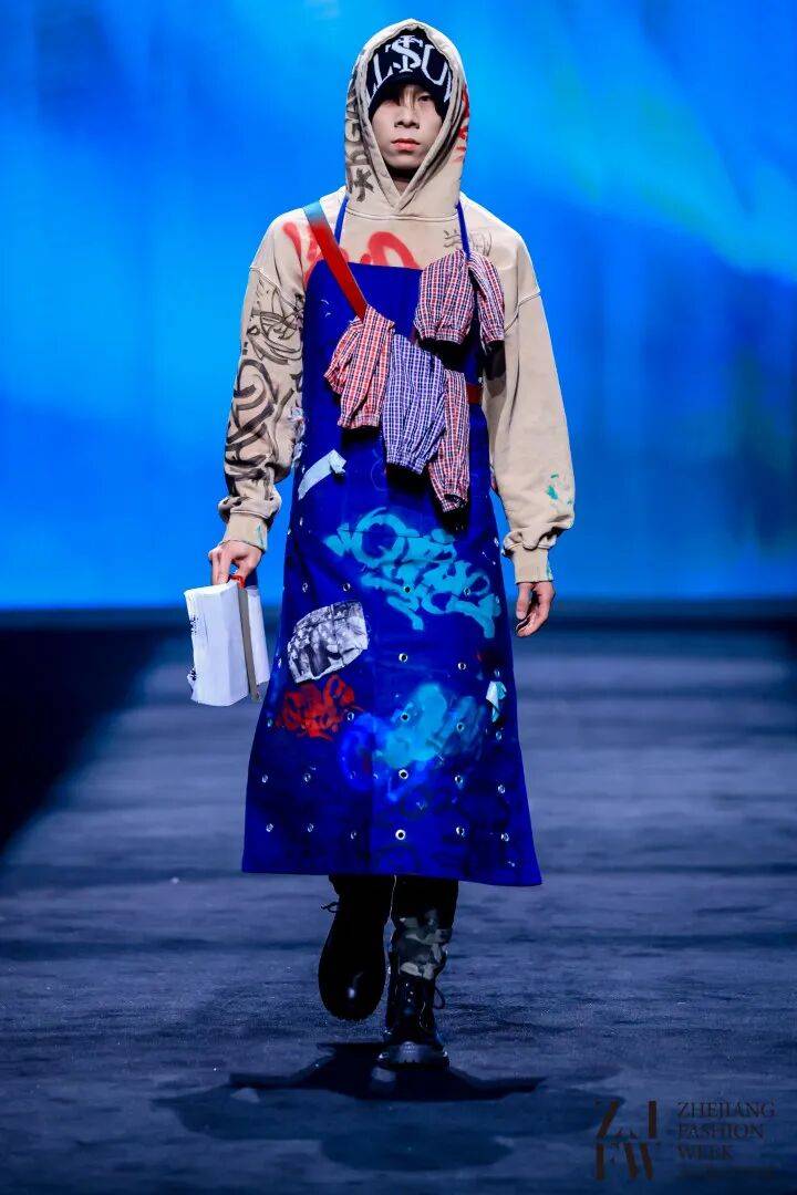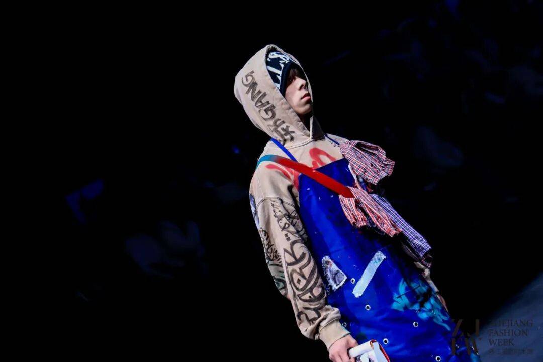 “传·融—共生”这一主题,旨在传达传承传统文化、融合现代技术与创新设计的理念。“共生”概念是当前行业与赛事中常见的关键词,我们将其具体阐释为:服装与AI技术共生、线上与线下传播方式共生、以及循环设计理念共生。希望通过这次展演,进一步倡导这种多元融合、可持续的创作思维。